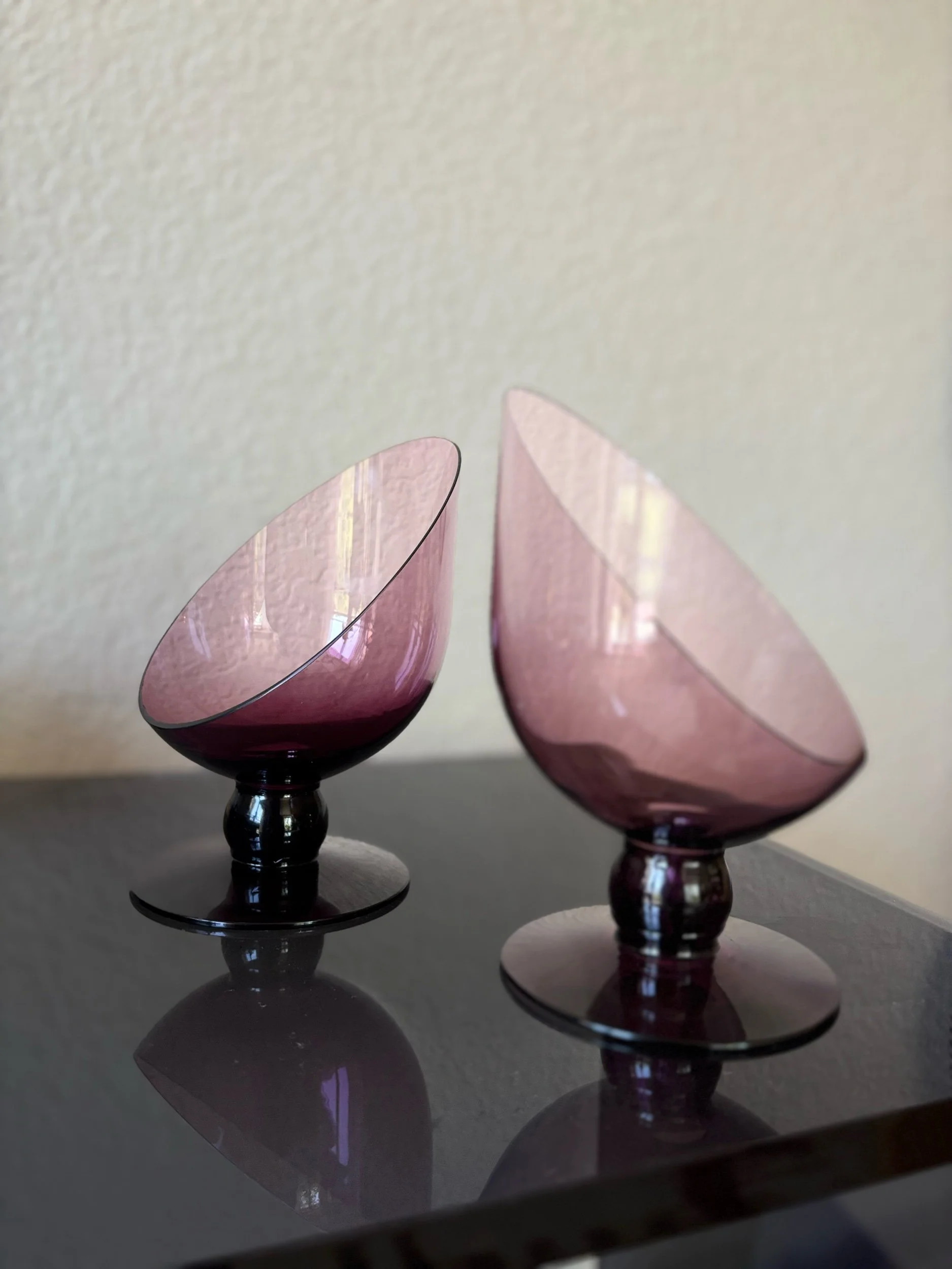 Vintage MCM Morgantown Glass Amethyst Coronet Slant Candle Holders: $55