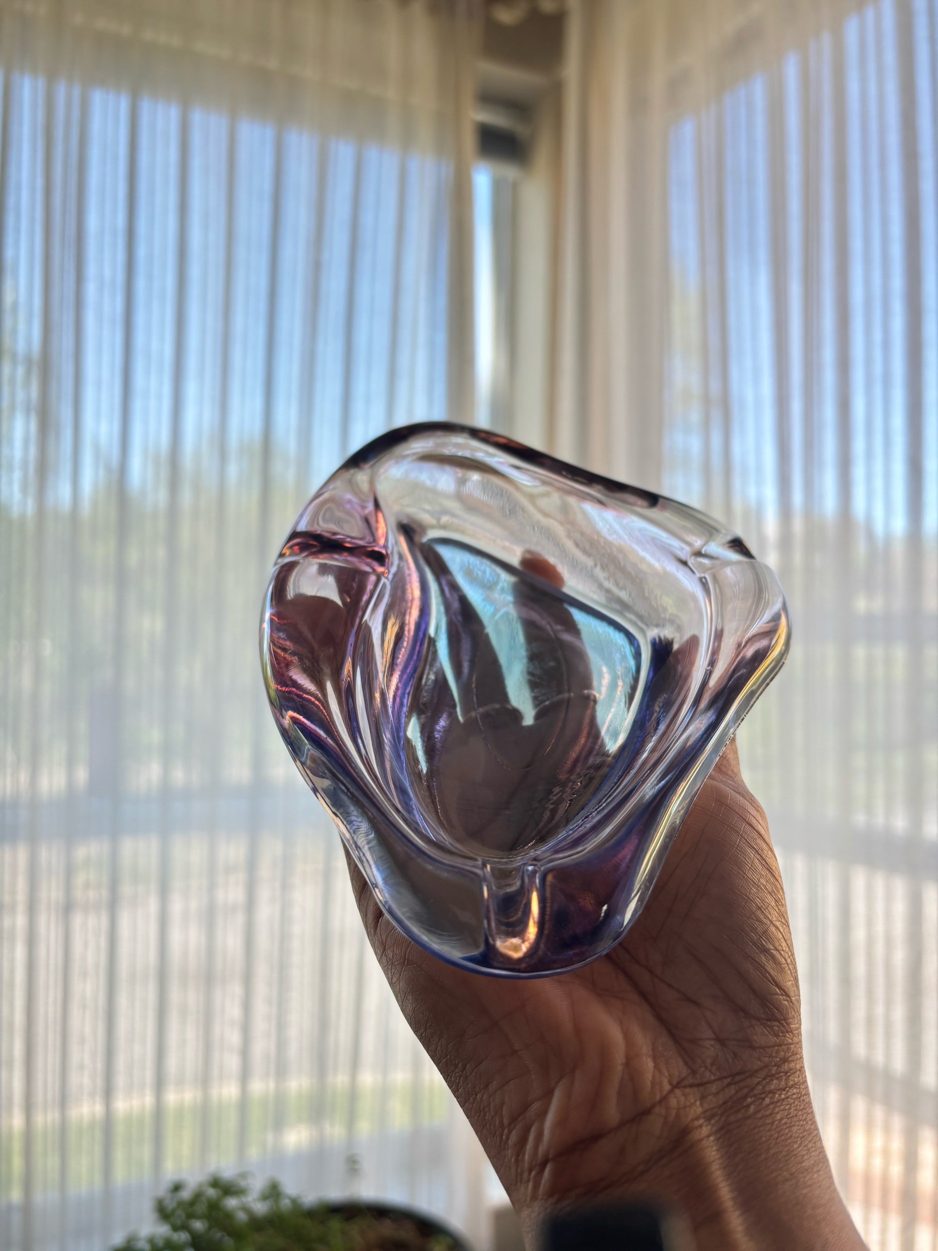 Stunning iridescent glass ashtray that could also be used as a candy dish or to hold trinkets for jewelry.